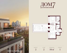 Продается 1-к квартира общей площадью 53.80 кв.м на 2 этаже в жилом квартале премиум-класса "Дом 7 Даниловский".