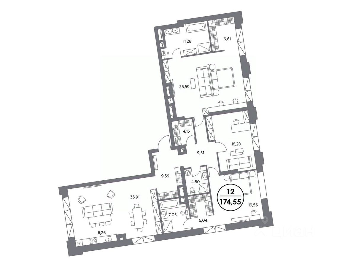 В клубном доме класса De Luxe "Космо 4/22", расположенном на острове Балчуг, напрямую от девелопера ГК "Галс-Девелопмент" представлена 3-комнатная квартира на 2 этаже общей площадью 174.70 м².