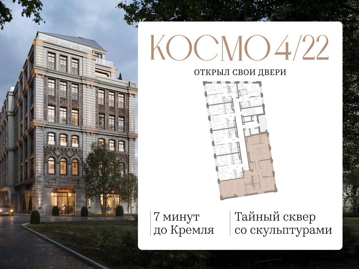 "Космо 4/22" находится всего в 7 минутах от Кремля с быстрым выездом на Садовое кольцо.