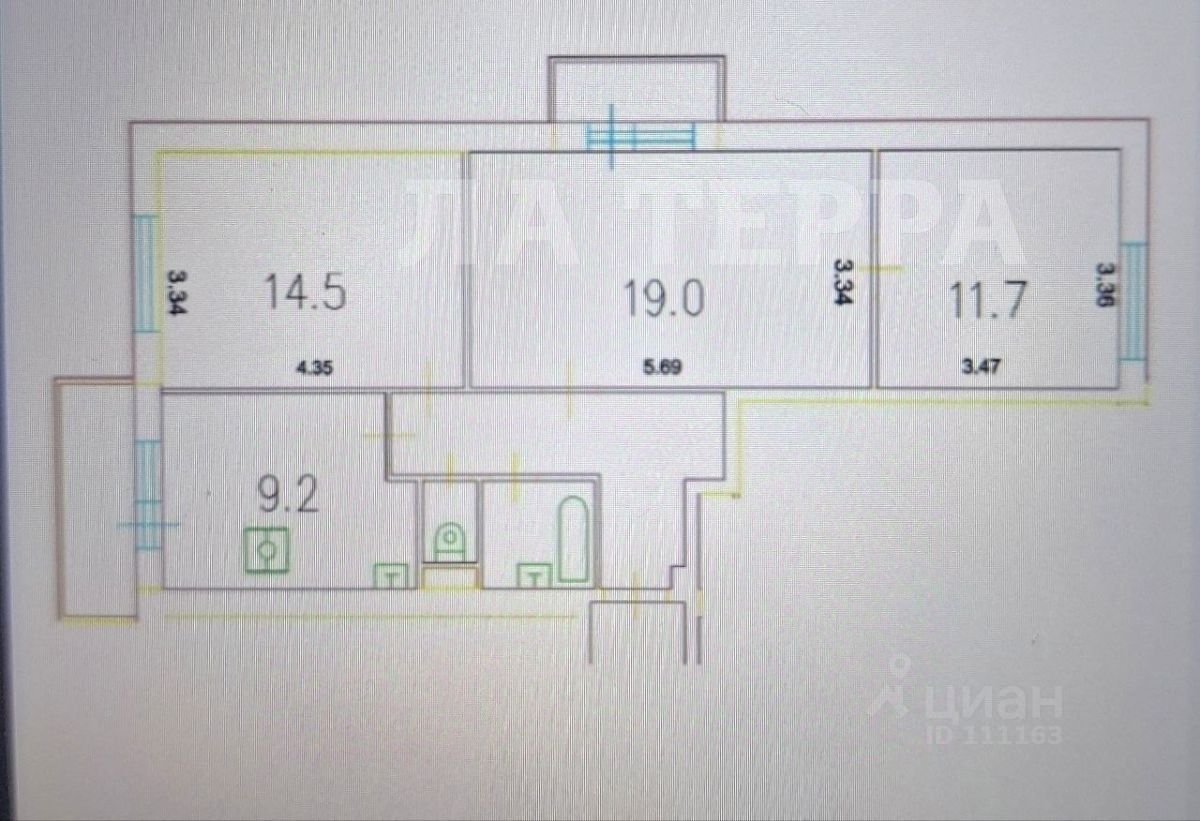 Квартира имеет три комнаты : 19.0 м.кв. с выходом на застекленный балкон + спальня 11.7 м.кв , вторая спальня 14.5 м.кв. Большая кухня 9.2 м.кв.с выходом на застекленный балкон .