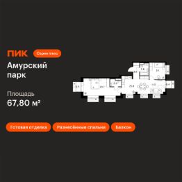 Продаётся 2-комн. квартира площадью 67,8 кв.м на 8 этаже 12 этажного дома (Корпус 4.2, Секция 1) проекта ПИК Амурский парк. Светлый просторный подъезд на уровне земли, функциональная планировка, большие окна, c отделкой.