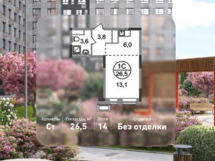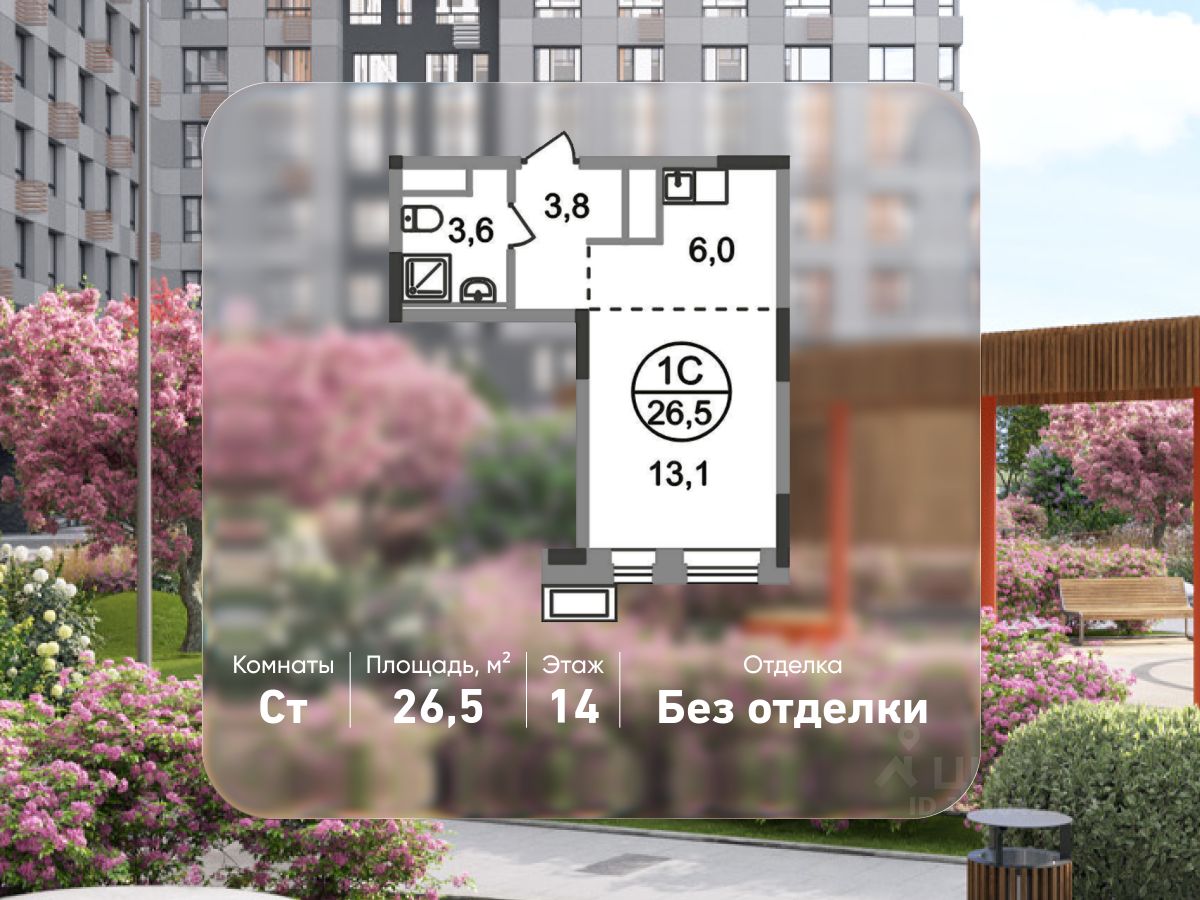 Общая площадь квартиры - 26,5 кв. м, этаж 14 из 19.