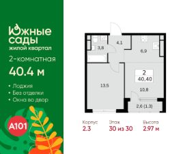 Продается двухкомнатная квартира 790 в новостройке ЖК "Южные Сады" по адресу Москва, ЮЗАО, Южное Бутово, Жилой комплекс "Южные Сады", корп. 2.3. Общая площадь квартиры - 40.40 кв. м., этаж 30 из 30, секция 6. Тип проекта, по которому построен дом - монолит, компания-застройщик - ООО "А101". Стоимость квартиры - 19368164 Р.