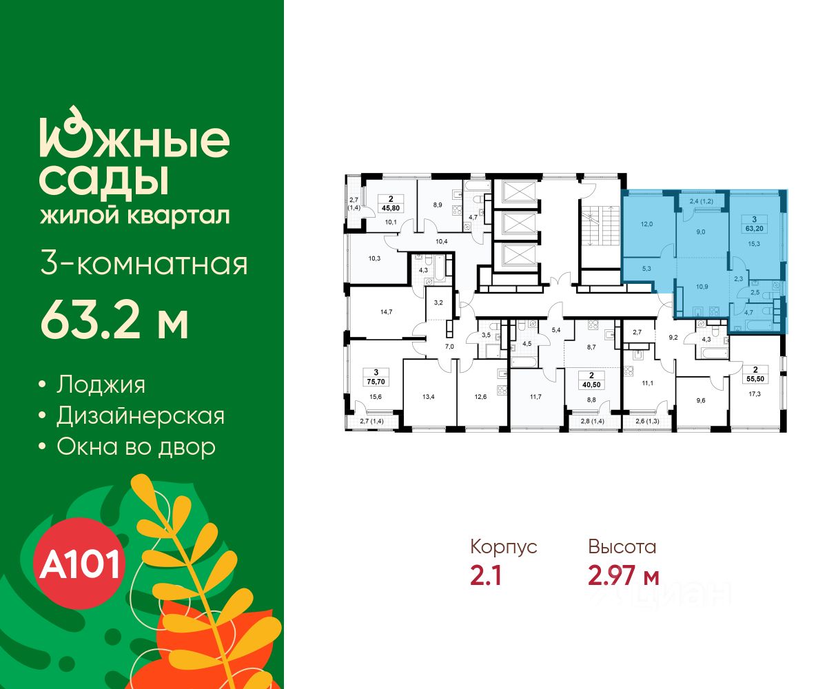 Продается трехкомнатная квартира 212 в новостройке ЖК "Южные Сады" по адресу Москва, ЮЗАО, Южное Бутово, Жилой комплекс "Южные Сады", корп. 2.1. Общая площадь квартиры - 63.20 кв. м., этаж 29 из 30, секция 2. Тип проекта, по которому построен дом - монолит, компания-застройщик - ООО "А101". Стоимость квартиры - 27195592 Р.