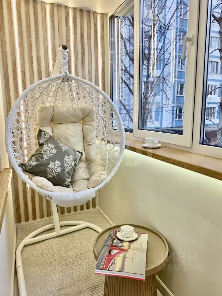 Большой балкон, где установлено кресло-кокон для комфортного отдыха и утренней чашечки кофе. Много мест для хранения.