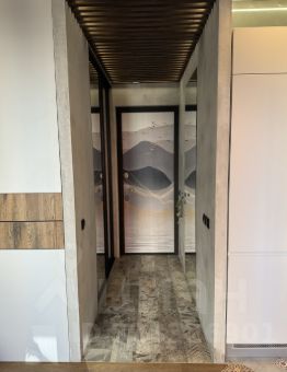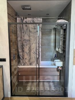 Раздельный санузел и зона ванной и душевой, плавно переходящая в спальную зону. Кондиционер, интернет, экран для проектора, сам проектов и необходимые крепления на натяжном потолке, диван-кровать.