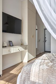 В квартире везде установлена встроенная мебель, что делает её максимально функциональной и при этом она не съедает пространство в квартире. В санузле и лоджии установлен теплый пол . Потолки выровнены под покраску , что бы оставить их максимально высокими . Установлены датчики от протечки воды , а также нагреватель системы водоснабжения для случаев отключения горячей воды . Вообщем делали для себя , для жизни , продумав все до мелочей .