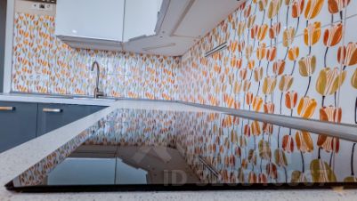 • Кухня — стены и фартук выполнены из плитки Kerama Marazzi, практично и эстетично.