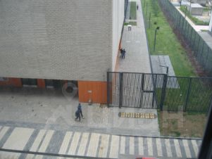 Напротив подъезда вход в школу и детский сад.