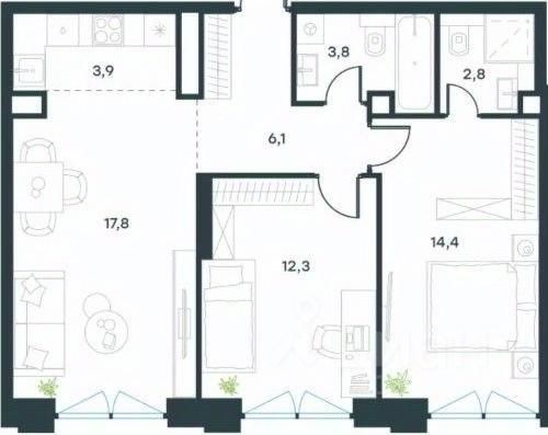 площадь: 62,3 м