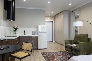 Кухня: на заказ от известной компании и на гарантии. Встроенная техника: духовка, СВЧ, посудомоечная машина, вытяжка, варочная панель. Дизайнерский холодильник добавляет стиля.