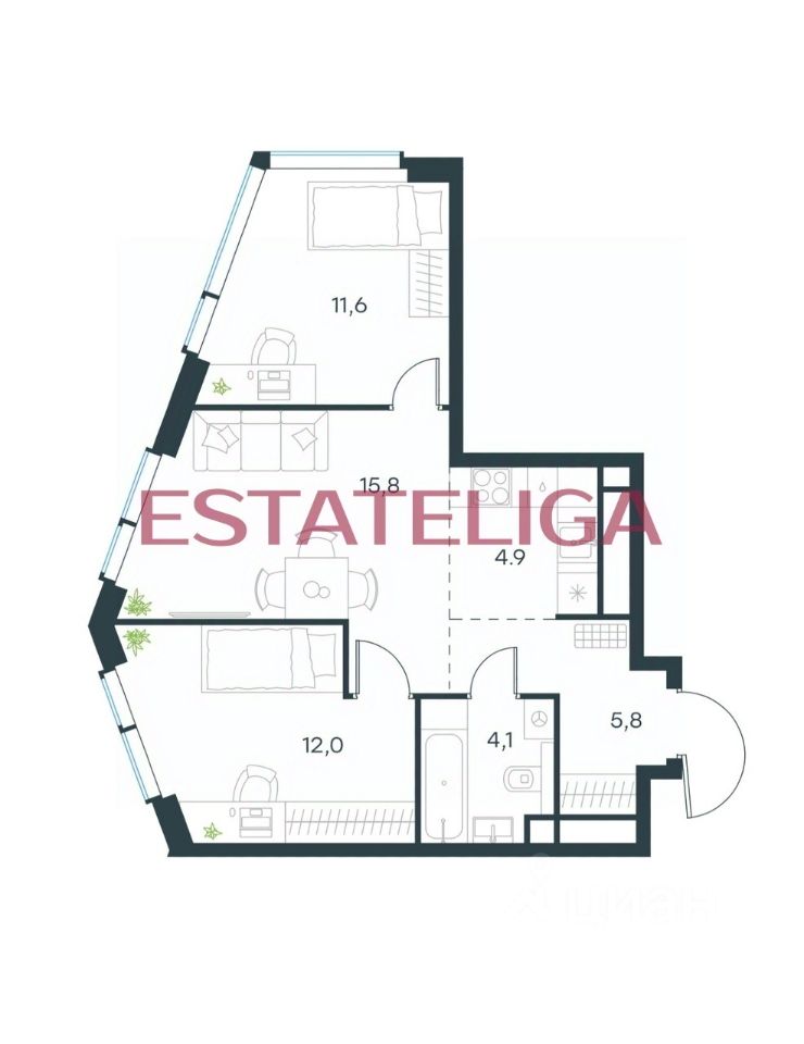 Id 62202. Продаётся евро трехкомнатная квартира с панорамными видами в ЖК Level Мичуринский.