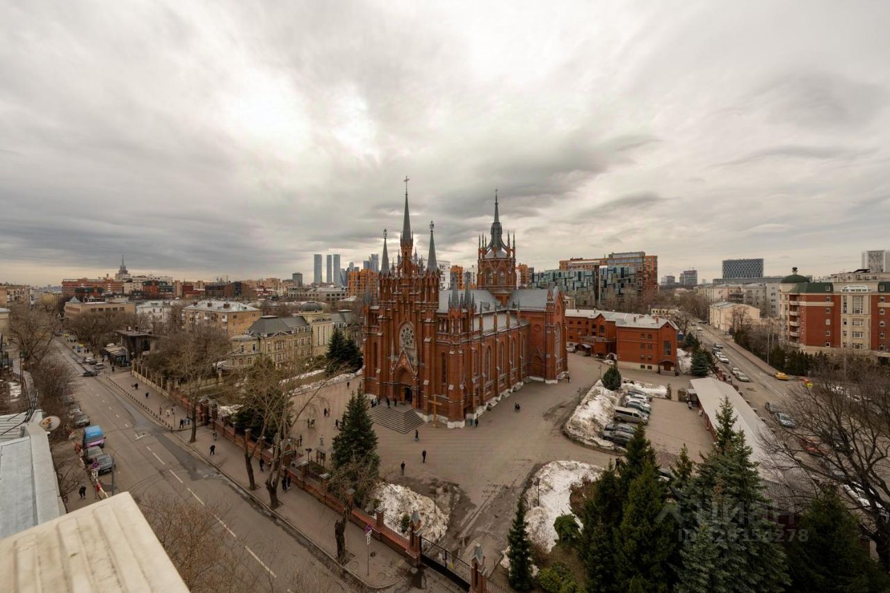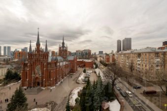 ЦАО, район Пресненский, дом 1978 года постройки кирпичный, индивидуальный проект. Вид на Кафедральный собор Римско-католической церкви непорочного зачатия Пресвятой Девы Марии.