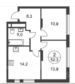 В продаже видовая евротрешка общей площадью 51 м² с удобной планировкой: