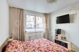 Квартира с функциональной планировкой — комнаты на разные стороны, что обеспечивает хорошее естественное освещение и проветривание. Кухня с выходом на лоджию. Вид из окон — во двор и на улицу.