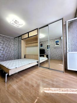 В спальне дорогая вертикально-подъёмная кровать, встроенная в многофункциональный зеркальный шкаф, которая в нерабочем состоянии находится в шкафу, что делает комнату еще просторнее в течении дня. Когда нужно, спальное место опускается и устойчиво размещается. После сна кровать легко поднять и снова зафиксировать в корпусе. Удобная большая тумба с телевизором. Кондиционер. Выход на лоджию.