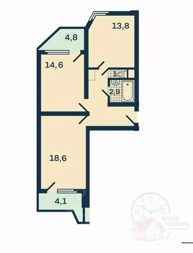 Кухня площадью 12,9 кв.м.