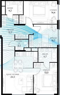 Продается просторная трехкомнатная квартира общей площадью 80 кв.м. на 24 этаже современного монолитного дома в ЖК "Сиреневый Парк".