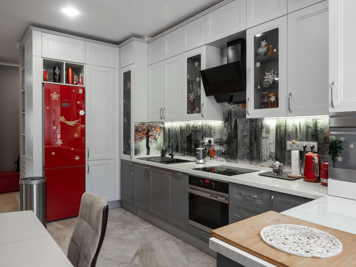 Техника на кухне: Вытяжка, варочная панель индукционная, духовка, микроволновка - всё HANSA. Мойка и смеситель - Blanco, холодильник BOSCH, посудомойка Delonghi, стиральная машина Samsung, сантехника: биде и унитазы - Jacob Delafon, краны и аксессуары - Am PM.
