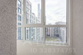 Уютная гостиная зона с большим окном и лоджией - виды на зеленый тихий двор и на башни соседнего ЖК Capital Towers