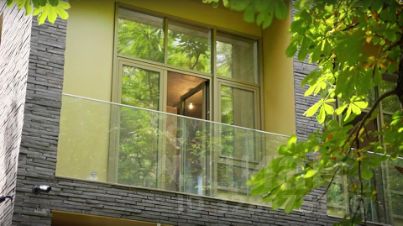 Высота потолков — 4,2 м, дверные проемы — 2,4 м. Установлены высокие панорамные окна (3 м) с алюминиевыми рамами ALUTECH и стеклопакетами Guardian, обеспечивающими отличную шумо- и теплоизоляцию.