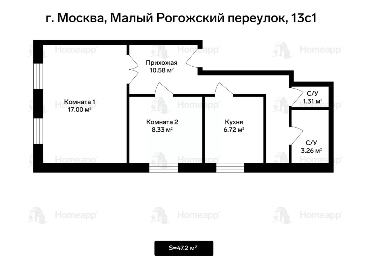 Номер лота: 99324. Продаётся 2-комнатная квартира 47,2 м² на 3 этаже 4-этажного дома в центре Москвы.Это не типовая "вторичка", а пространство с характером: высота потолков 3,5 метра, тишина двора и всего 2 квартиры на этаже.