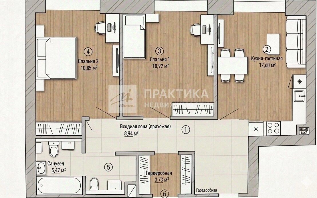 * Состояние: Современный качественный ремонт, квартира полностью готова к заселению.