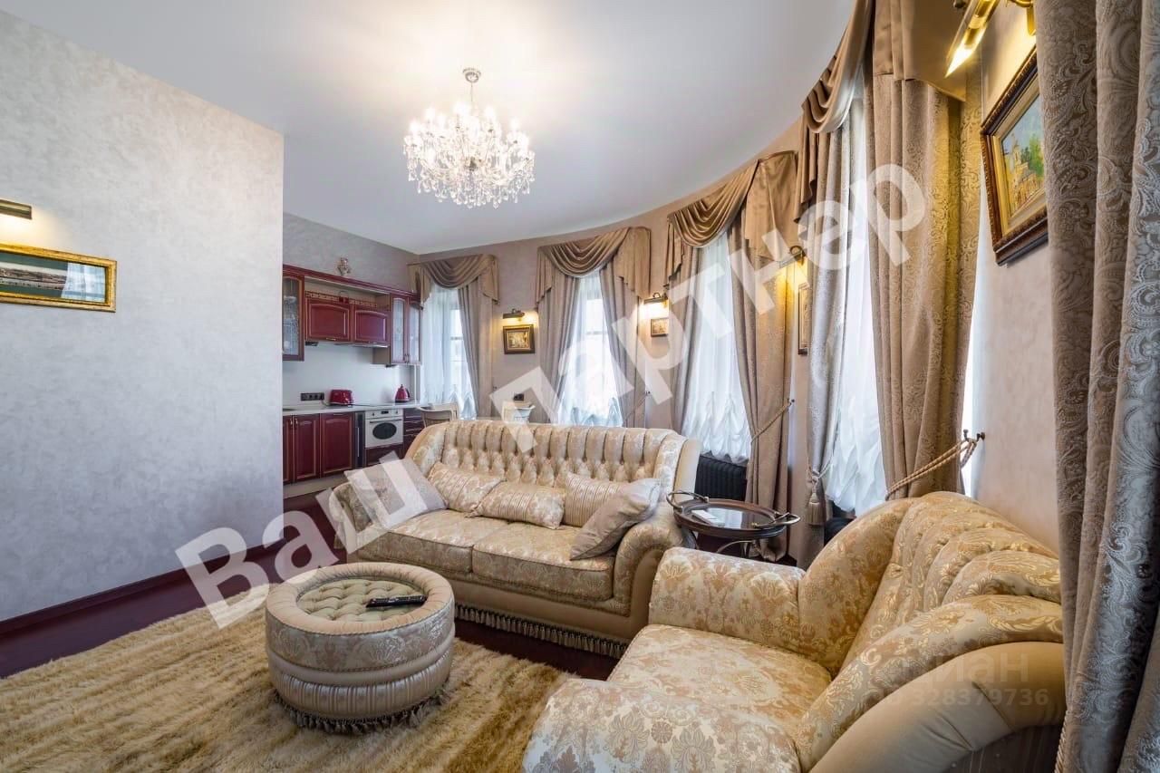 Квартира оборудована бытовой техникой (кондиционер, бойлер на случай отключения горячей воды, холодильник, посудомоечная машина, стиральная машина, плита, духовка, микроволновая печь, два телевизора, акустическая система, встроенный в стену сейф, проведен интернет и телефония) и элитной мягкой мебелью. В квартире семь больших окон, которые выходят на пешеходный Пятницкий и тихий