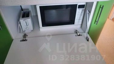 Общая площадь квартиры составляет 34,2 кв. м, по ЕГРН, из которых 18 кв. м это жилая площадь, а кухня занимает 8 кв. м., также застекленный балкон.