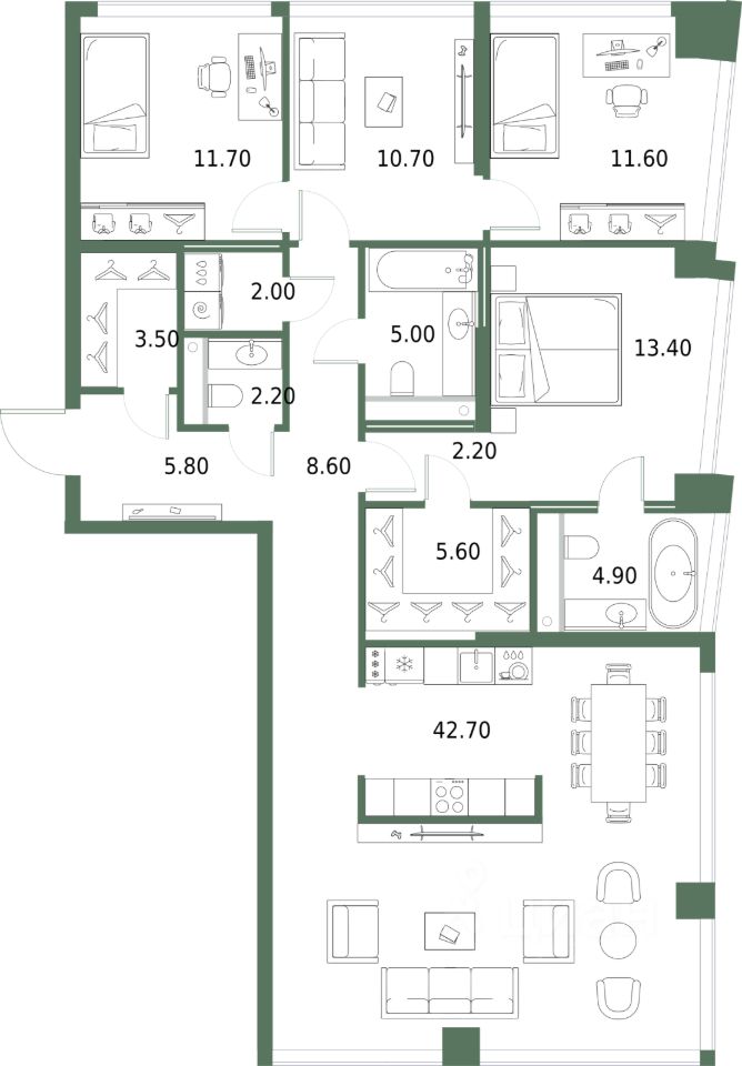 3-комн. квартира с предчистовой отделкой в ЖК "Северный Порт" на 4 этаже. Общая площадь: 129.9 кв.м., жилая: 38.8 кв.м., площадь просторной кухни-столовой: 42.3 кв.м. Квартира без проходных комнат, окна выходят нa три cтopoны дома. В квартире один совмещенный и один раздельный санузел. Высота потолков 3.3 м.