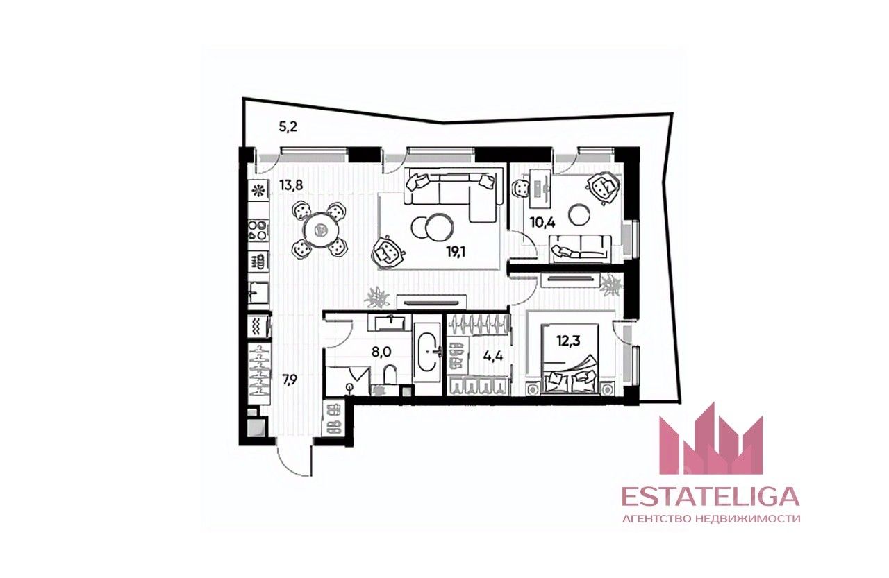 Простор: 3 комнаты позволяют организовать личное пространство для каждого члена семьи, обустроить кабинет или гардеробную.