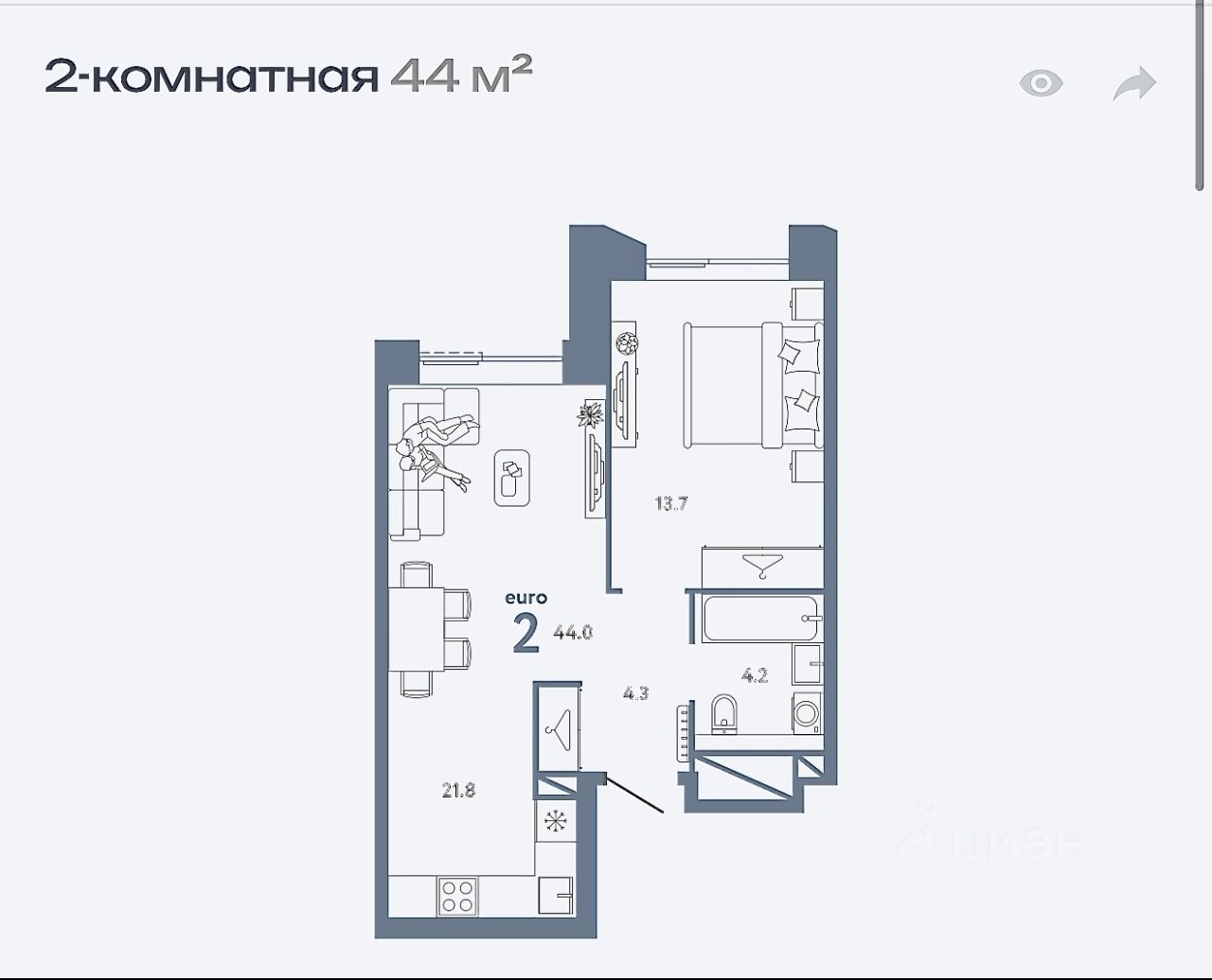Светлая, двухкомнатная квартира с готовой отделкой под ключ от застройщика (фото ремонта прилагаются, все описание есть в ДДУ) в современном монолитном доме комфорт+ класса с элементами бизнес-формата.