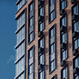 Жилой комплекс состоит из пяти монолитных башен высотой 32 этажа. В архитектуре проекта используются приемы и материалы, отражающие стиль индустриализации, характерный для данной локации. Фасады оформлены с помощью плитки, имитирующей красный состаренный кирпич, и металлических элементов дымчато-чёрного оттенка. Верх башен выполнен из композитных зеркальных панелей.