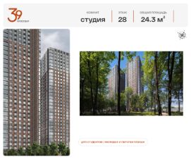 Продается многокомнатная квартира в ЖК "Проспект 39" по адресу Москва, ЮВАО, Рязанский проспект, вл. 39, к. 1. Общая площадь квартиры - 24,30 кв.м., этаж 28. Стоимость квартиры - 12 083 311 р. Продаётся без отделки.