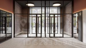 - Точечные светильники и стильный индивидуальный номер у каждой квартиры
