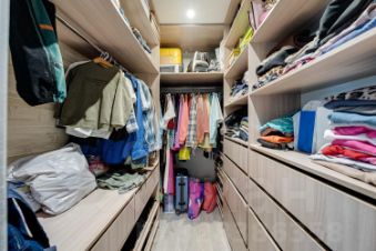 Квартира расположена на 9 этаже. Окна выходят на две стороны. Эргономичная планировка включает в себя: просторный холл, две изолированные спальни (в одной из которых выход на утепленный балкон), просторную гостиную, кухню с выходом на утепленный балкон (который используется как кабинет), С/У (в одном из которых установлена ванная, во втором душевая кабина), вместительные гардеробная и кладовая.