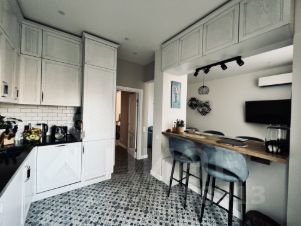 — Кухня с барной стойкой и выходом в гостиную