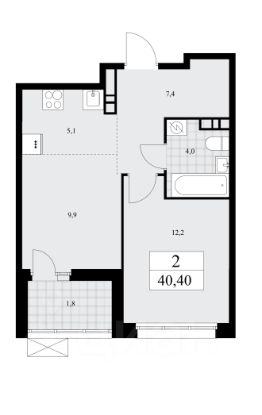 Площадь: 40,4 м²