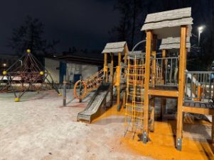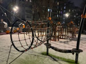 Во дворе: детская площадка, спортивная площадка с тренажёрами, качели для отдыха
