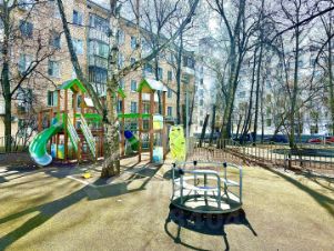 Чистый подъезд. Большой зеленый двор с детской площадкой.