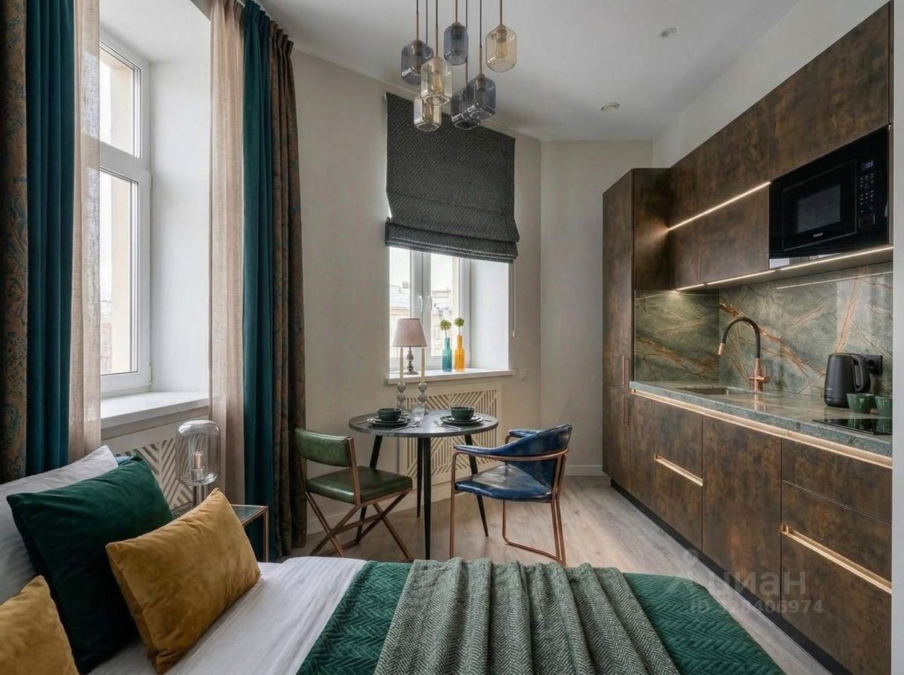 Студия 19.6 м2 в историческом центре Москвы. Девяткин переулок, дом 2, этаж 2/4. Выполнен новый дизайнерский ремонт с полной заменой всех коммуникаций. Высокий уровень шумоизоляции — 62 Дб. Высота потолков 3,4 метра. Дом расположен внутри Садового кольца, в пешей доступности от метро.