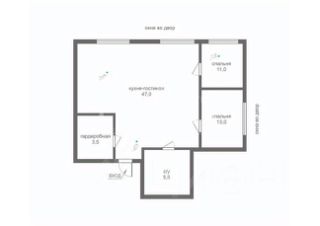 Планировка: кухня-гостиная, две спальни, гардеробная, совмещенный санузел, прихожая.