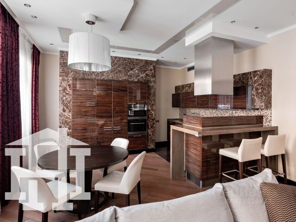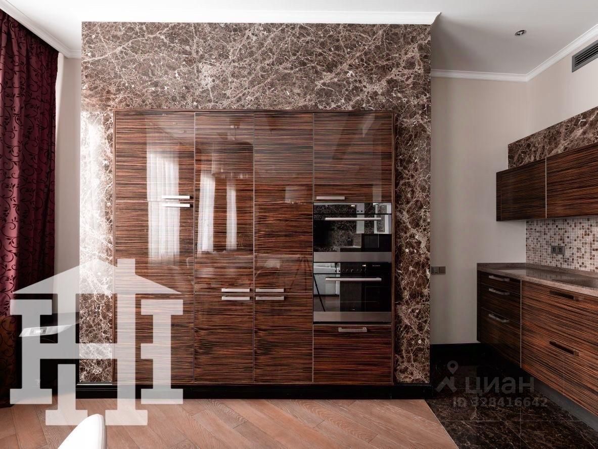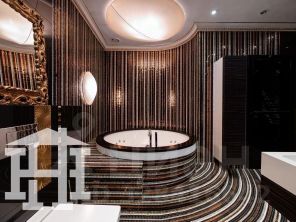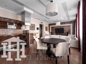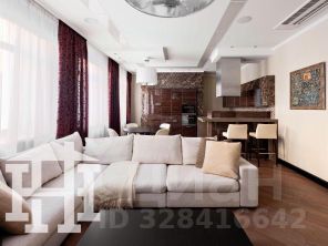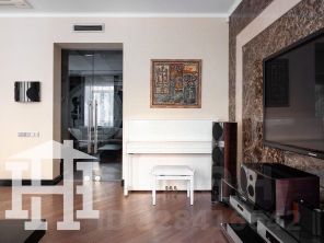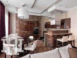 -Стены гостиной отделаны натуральным камнем, который придаёт помещению аристократичность, элегантность и подчёркивает высокий статус квартиры