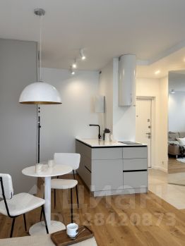 Продается прекрасная квартира с дизайнерским ремонтом. Просторная кухня-гостиная площадью 20 м² оборудована мебелью на заказ и современной техникой, включая холодильник, встроенный духовой шкаф, микроволновку и посудомоечную машину. В квартире совмещенный санузел с душевой кабиной, каменной раковиной и встроенным большим шкафом для стиральной и сушильной машин.