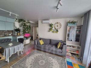 - **Мебель и техника:** полностью оборудована, остаётся при продаже (кухня со всей встроенной техникой, шкафы, диван, кровать, стиральная машина, холодильник, два кондиционера и др.).