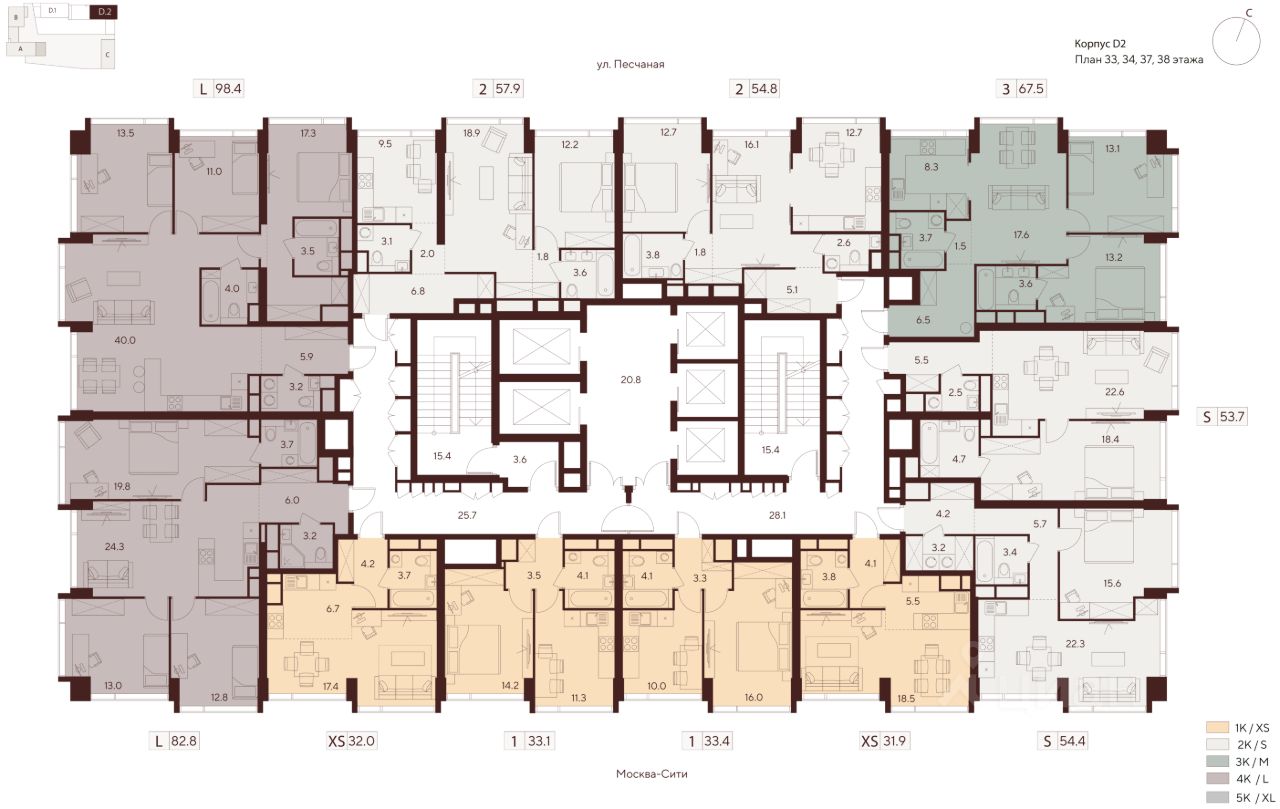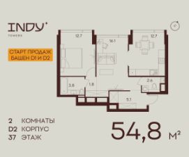 Продается 2-комнатная квартира на 37 этаже жилого комплекса Indy Towers. Срок сдачи: 3 кв. 2029 г.