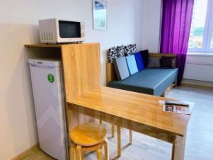 В квартире выполнен ремонт, что позволяет сразу заехать и жить. Просторная жилая зона площадью 14 кв. м и функциональная кухня 5 кв. м создают пространство, в котором можно комфортно обустроить свой быт. Высокие потолки 2.8 метра добавляют ощущения простора и воздуха.