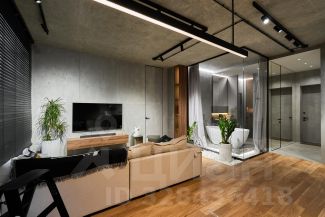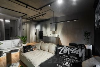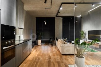 Дизайн выполнен в лаконичном индустриальном стиле. Благородный акцентный бетон на потолке и стенах гармонично сочетается с теплотой натурального дерева и профессиональным трековым освещением.