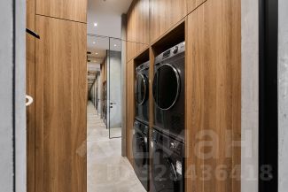 Функциональность: В квартире предусмотрена отдельная постирочная комната со встроенной техникой премиум-класса, что позволяет скрыть бытовые процессы и сохранить чистоту линий интерьера.