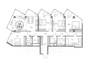 В элитном жилом комплексе "Монблан" на Шлюзовой набережной в Замоскворечье напрямую от девелопера ГК "Галс-Девелопмент" представлена 4-комнатная квартира квартира на 4 этаже общей площадью 172.10 м².